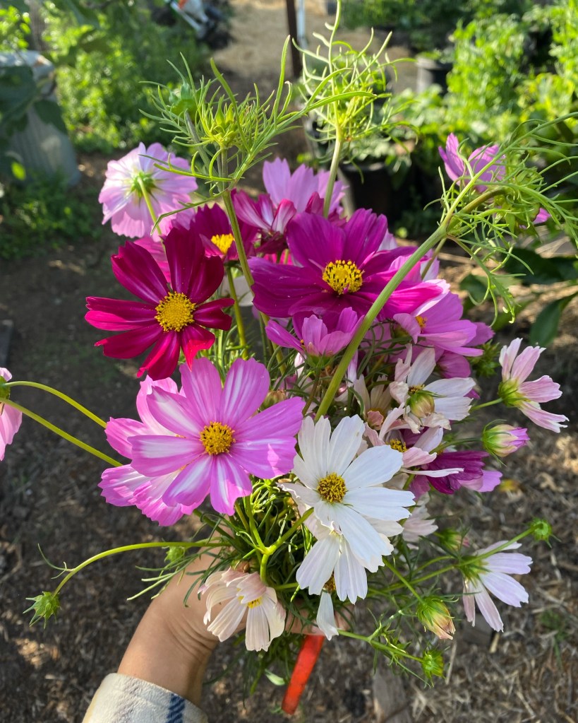 Cosmos flowers are also popular as cut flowers due to their long vase life and ability to add a pop of color to any floral arrangement. They are also used in dried flower arrangements and can be easily preserved by hanging them upside down in a cool, dry place.