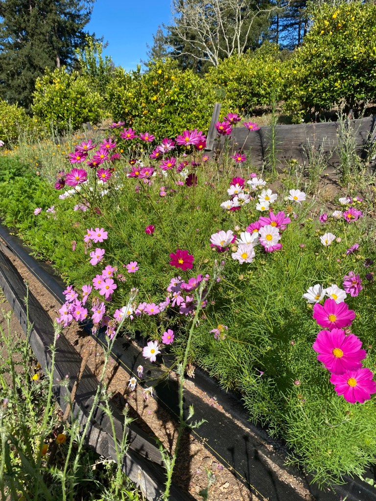 Cosmos flowers bloom from mid-summer to early fall, making them a perfect choice for adding late-season color to gardens. They also attract pollinators such as bees and butterflies, making them a great addition to any pollinator garden.